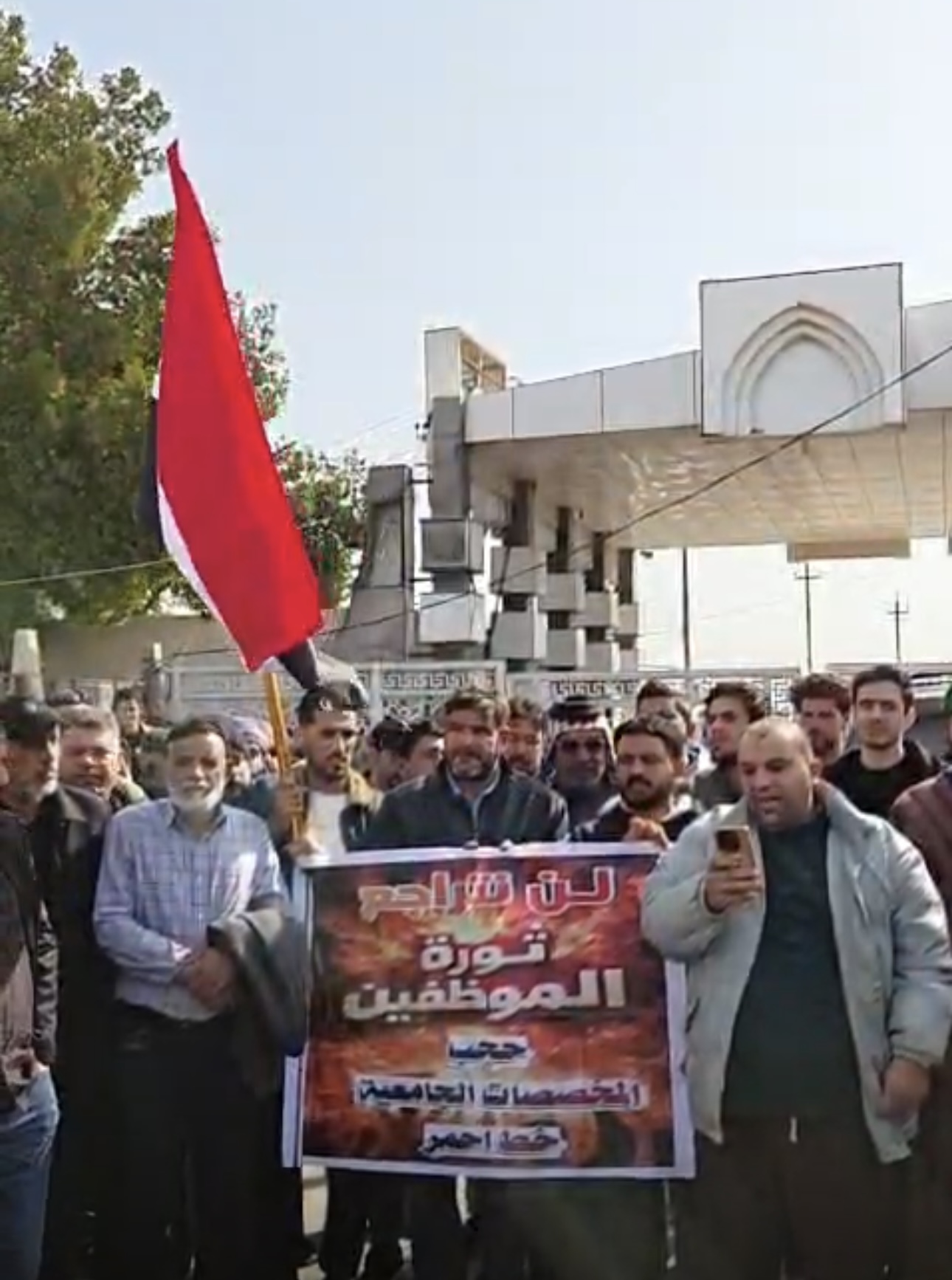 الرئيسيةمحلينصب خيام واعتصام أمام بوابة جامعة البصرة للمطالبة بإلغاء قرارات قطع المخصصات محلي نصب خيام واعتصام أمام بوابة جامعة البصرة للمطالبة بإلغاء قرارات قطع المخصصات 0 65 يناير 24, 2026 كتب بواسطة المنهج نيوز شارك FacebookTwitterPinterestWhatsApp Screenshot بعد التظاهرة التي نضمها موظفو جامعة البصرة لليوم الثاني على التوالي ، للمطالبة بإلغاء قرارات المجلس الإقتصادي و وزارة المالية بقطع مخصصات الشهادات العليا ، ينصبون الخيام و يعلنون اعتصامهم امام بوابة الجامعة في موقع (كرمة علي) لحين تحقيق مطالبهم. FacebookTelegram شارك FacebookTwitterPinterestWhatsApp المادة السابقةقائد القوات البرية الإيراني: الجيش وحرس الثورة مستعدان للدفاع عن إيرانالمقالة القادمةهيأة الرأي: قرار مجلس الوزراء لا يؤثر على مخصصات الخدمة الجامعية مقالات ذات صلة الامن إصابة خمسة أشخاص في ساحة التبادل التجاري بالجانب الإيراني، بينهم عراقيان وثلاثة إيرانيين، مارس 24, 2026 الامن محافظ البصرة يوجّه بدخول الشاحنات عبر منفذ الشلامجة دون قيود مارس 24, 2026 محلي محافظ البصرة يوجه بتعطيل الدوام في مدارس البصرة والجامعات ليومي الاربعاء والخميس مارس 24, 2026 ترك الرد إلغاء الرد التعليق: من فضلك ادخل تعليقك اسم:* من فضلك ادخل اسمك هنا البريد الإلكتروني:* لقد أدخلت عنوان بريد إلكتروني غير صحيح! الرجاء إدخال عنوان بريدك الإلكتروني هنا الموقع: احفظ اسمي والبريد الإلكتروني وموقع الويب في هذا المتصفح للمرة الأولى التي أعلق فيها. الأكثر شهرة إصابة خمسة أشخاص في ساحة التبادل التجاري بالجانب الإيراني، بينهم عراقيان وثلاثة إيرانيين، مارس 24, 2026 محافظ البصرة يوجّه بدخول الشاحنات عبر منفذ الشلامجة دون قيود مارس 24, 2026 محافظ البصرة يوجه بتعطيل الدوام في مدارس البصرة والجامعات ليومي الاربعاء والخميس مارس 24, 2026 أصوات الانفجارات في البصرة ناجمة عن قصف استهدف مواقع في مدينة آبادان الإيرانية الحدودية مارس 24, 2026 تحميل أكثر احدث التعليقات Sarat على البنك المركزي يصدر بياناً بشأن حرمان بعض المصارف العراقية من التعامل بالدولار