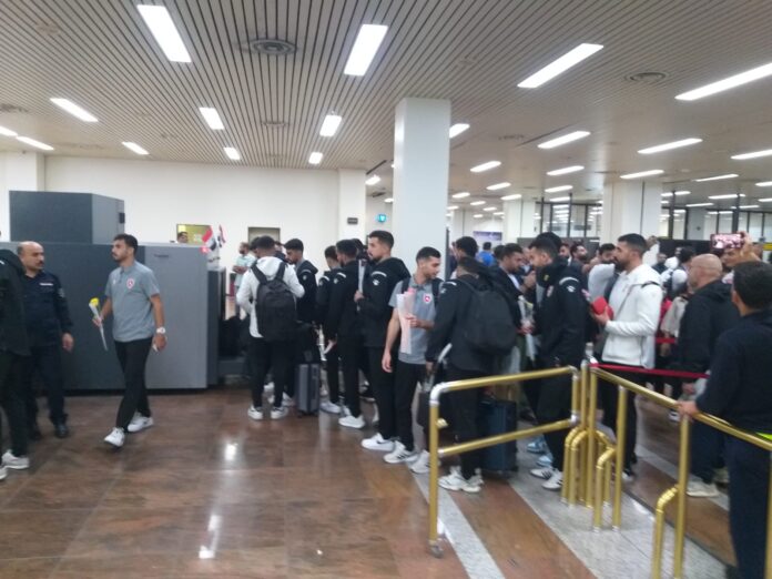 وصول المنتخب الاردني بكرة القدم الى محافظة البصرة ، الذي سيلعب مع نظيره المنتخب العراقي مساء غد على ملعب البصرة الدولي في المدينة الرياضية ضمن تصفيات كأس العالم ٢٠٢٦.