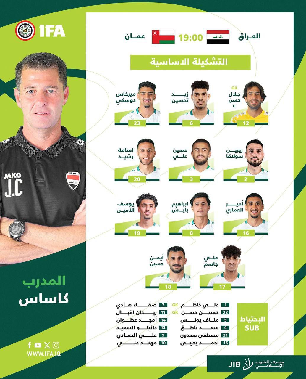 الرئيسيةرياضيتشكيلةُ المنتخب الوطنيّ رياضي تشكيلةُ المنتخب الوطنيّ 0 192 سبتمبر 5, 2024 كتب بواسطة المنهج نيوز شارك FacebookTwitterPinterestWhatsApp تشكيلةُ المنتخب الوطنيّ لمُواجهةِ منتخبِ عُمان ضمن التصفياتِ المؤهلة لمونديال 2026 FacebookTelegram شارك FacebookTwitterPinterestWhatsApp المادة السابقةوزارة الدفاع العراقية توقع عقداً مع شركة ايرباص الفرنسيةالمقالة القادمةالآن.. صافرة الحكم تعلن بدأ مباراة منتخبنا الوطني العراقي مع المنتخب العماني مقالات ذات صلة رياضي رئيس كتلة النهج الوطني النيابية، النائب المهندس أحمد الربيعي يزور اللجنة البارالمبية و يلتقي رئيسها و أعضاء المكتب التنفيذي لللجنة فبراير 23, 2025 رياضي منتخبنا الوطني يسجل هدف التعادل على المنتخب السعودي ديسمبر 28, 2024 رياضي انطلاق مباراة منتخبنا الوطني ونظيره السعودي في خليجي 26 ديسمبر 28, 2024 ترك الرد إلغاء الرد التعليق: من فضلك ادخل تعليقك اسم:* من فضلك ادخل اسمك هنا البريد الإلكتروني:* لقد أدخلت عنوان بريد إلكتروني غير صحيح! الرجاء إدخال عنوان بريدك الإلكتروني هنا الموقع: احفظ اسمي والبريد الإلكتروني وموقع الويب في هذا المتصفح للمرة الأولى التي أعلق فيها. الأكثر شهرة إصابة خمسة أشخاص في ساحة التبادل التجاري بالجانب الإيراني، بينهم عراقيان وثلاثة إيرانيين، مارس 24, 2026 محافظ البصرة يوجّه بدخول الشاحنات عبر منفذ الشلامجة دون قيود مارس 24, 2026 محافظ البصرة يوجه بتعطيل الدوام في مدارس البصرة والجامعات ليومي الاربعاء والخميس مارس 24, 2026 أصوات الانفجارات في البصرة ناجمة عن قصف استهدف مواقع في مدينة آبادان الإيرانية الحدودية مارس 24, 2026 تحميل أكثر احدث التعليقات Sarat على البنك المركزي يصدر بياناً بشأن حرمان بعض المصارف العراقية من التعامل بالدولار