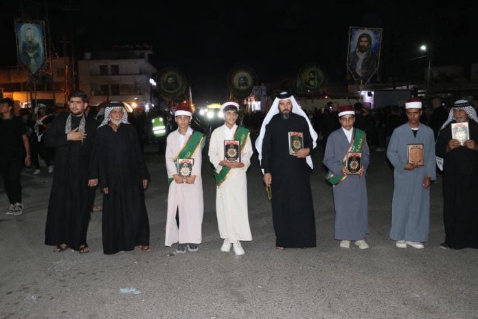 المشاركون في المواكب الحسينية في البصرة يؤدون الشعائر حاملين نسخا من المصحف الشريف
